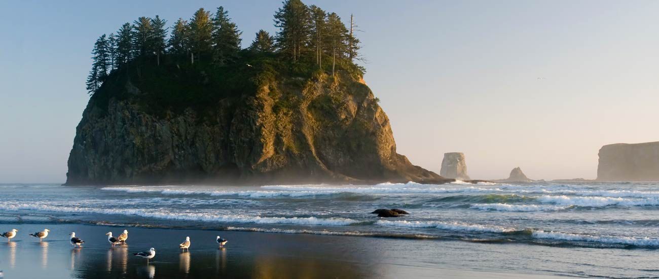 The first, Second, and Third Beaches extend south from the mouth of the Quileute River. These beaches are long, flat crescents popular with photographers due to sea-stacks (a well-known sea-stack complex, the “Quileute Needles”, lies just offshore), tidal pools, and eagles. Access to Second and Third Beaches requires hikes of 0.5 to 1.5 miles, respectively. The headlands at First Beach and Second Beach can’t be passed, but one can backpack south from Third Beach along the coast for about 17 miles to Oil City.